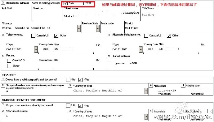 1 邮寄地址填写;2 居住地址,如果与邮寄地址相同,直接选YES即可,不同的话需要再次填写;3 联系电话;4 第二联系电话;5 传真不用填写;6 邮箱一定要写,使馆会发邮件到这个邮箱,所以保证邮箱填写的正确性,并且要填写一个经常使用的邮箱。