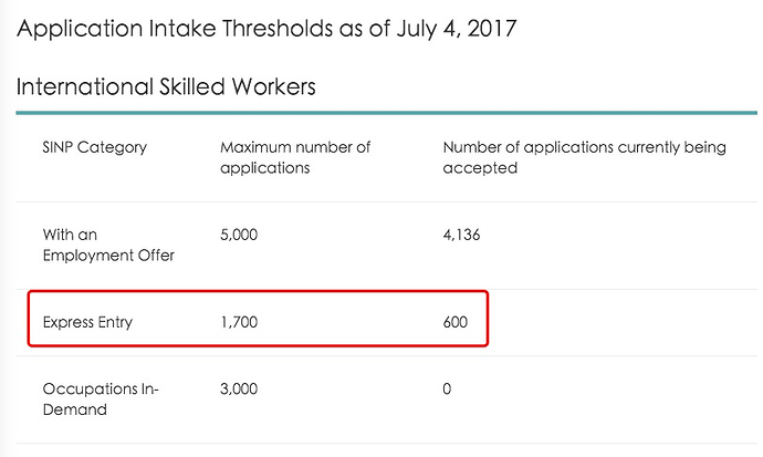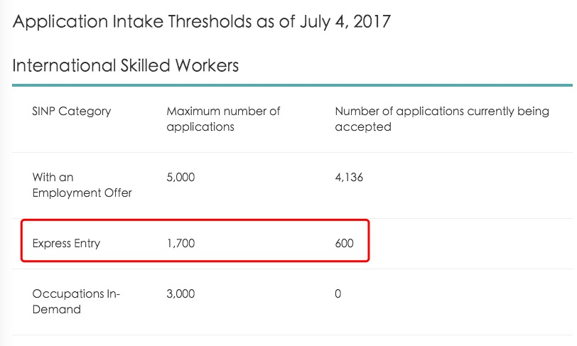 SINP 技术移民 2017 申请配额开放记录 - 飞出国