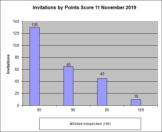 The table below shows the number of invitations issued in the SkillSelect invitation round on 11 November 2019.