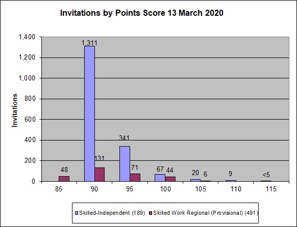 The table below shows the number of invitations issued in the SkillSelect invitation round on 13 March 2020.