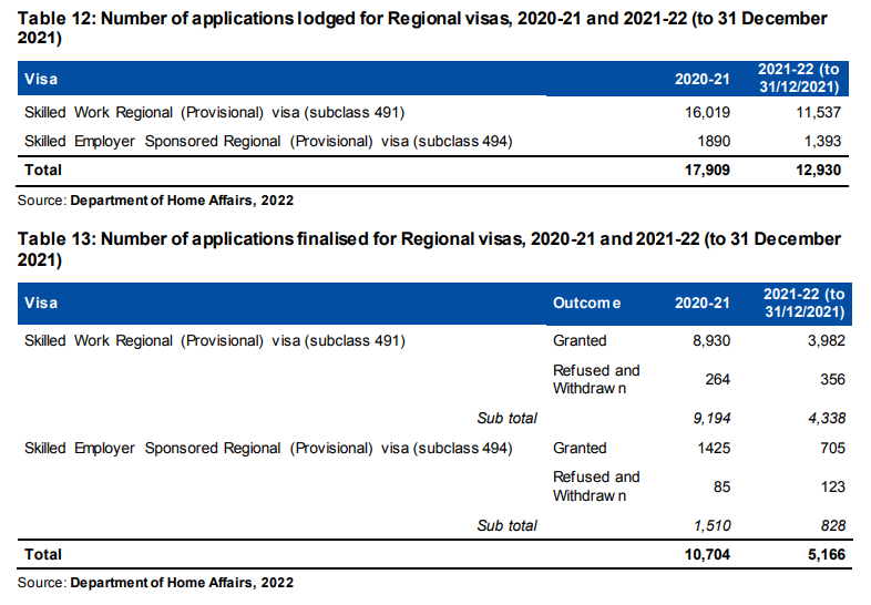 同样,属于近两年澳洲移民配额中占比较多的偏远地区移民,包括491偏远地区州担保移民以及494偏远地区雇主担保移民,在2021-22财年总配额是11200个,截止到2021年12月31日,已递交的申请达到了12930个,审理完成5166个申请。