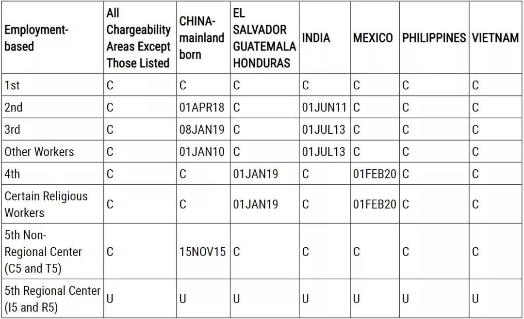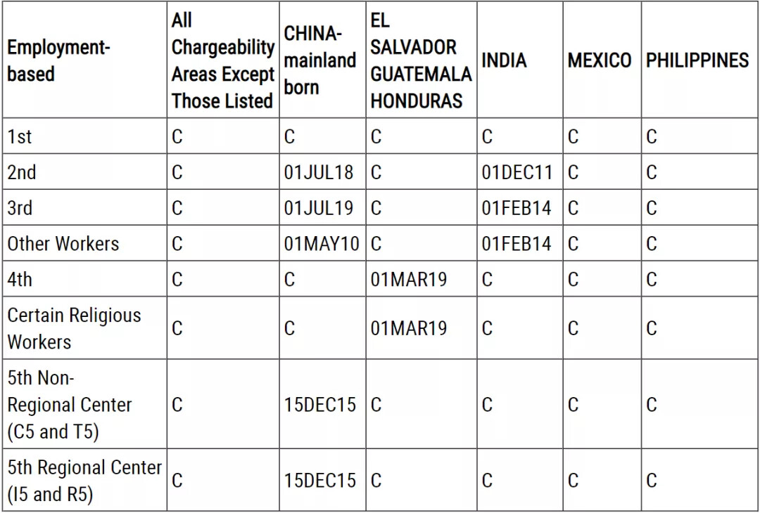 根据2021年8月美国职业移民排期表A,对于中国大陆出生的申请人来说: