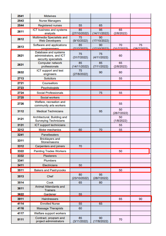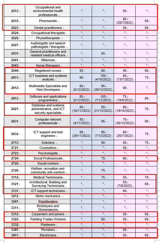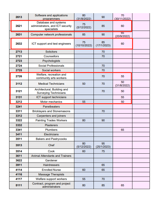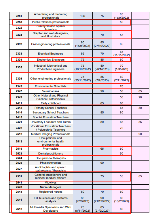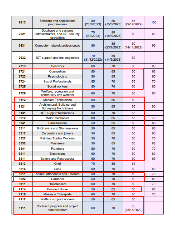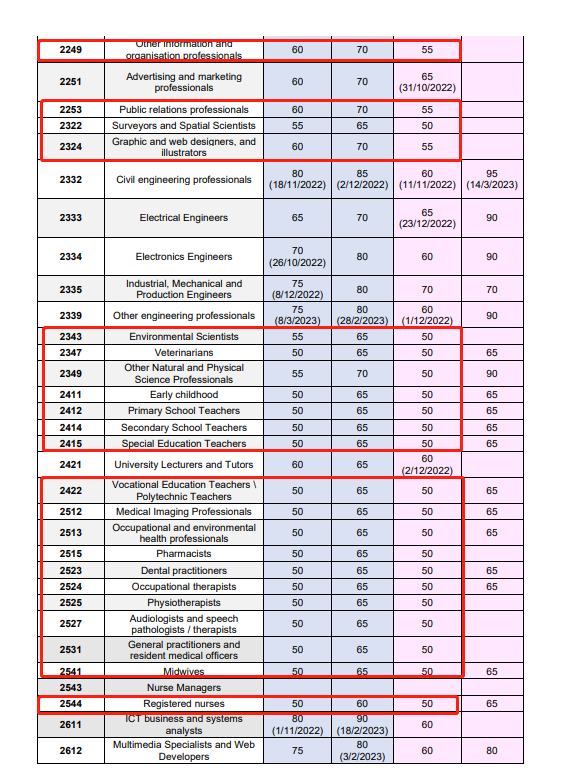 - 职业是ACT紧缺职业,雅思4个7(PTE 4个65),博士学历,近10年内有8年提名职业相关工作经验(如果工作年限不够8年,有配偶考4个7也可以够分数),Matrix分数可以达到65分