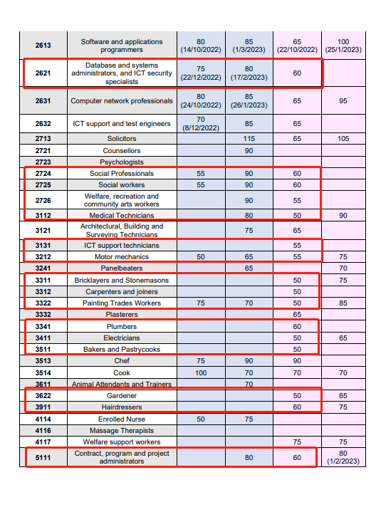 飞出国:2022年10月31日,澳洲ACT堪培拉州担保沿用之前的CANBERRA MATRIX系统,进行了2022-2023财年第9轮邀请。如下: