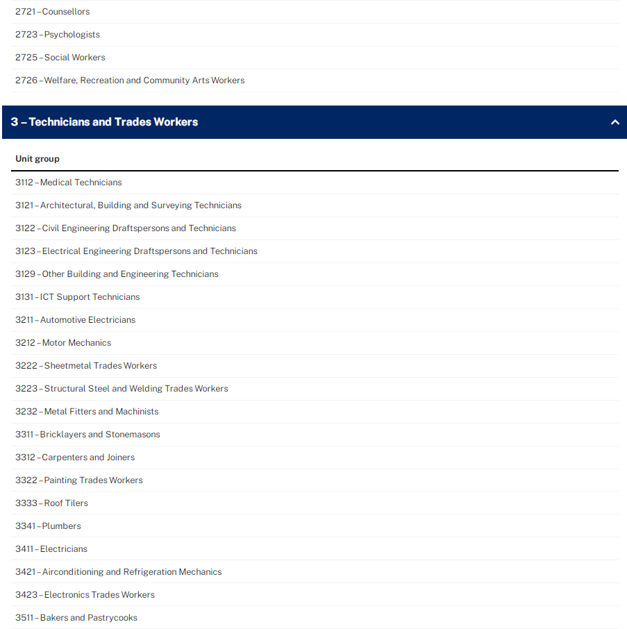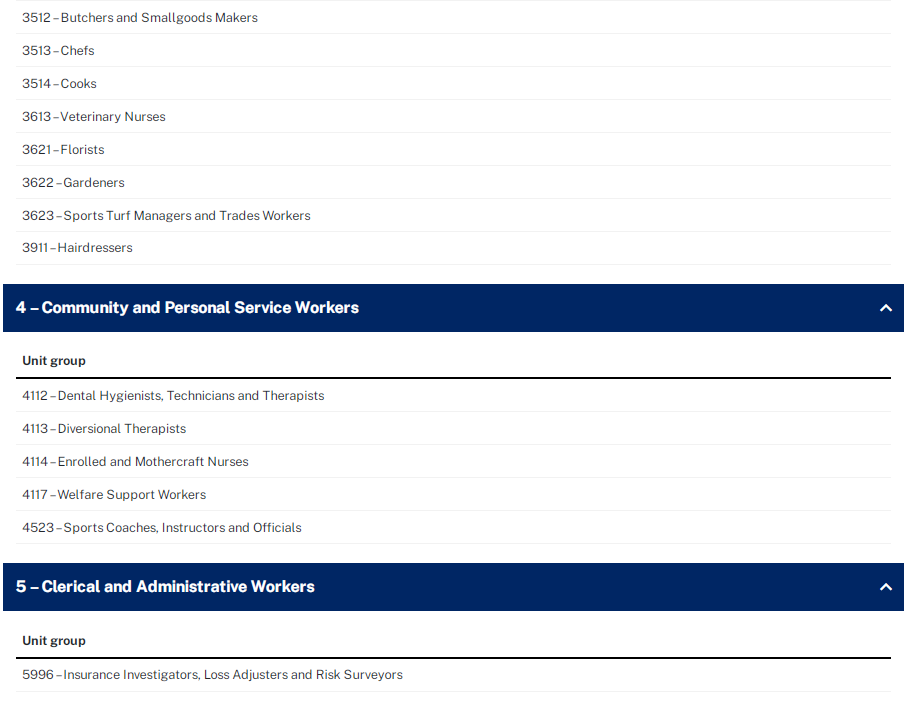 以下是新州2022-23财年190州担保职业列表: