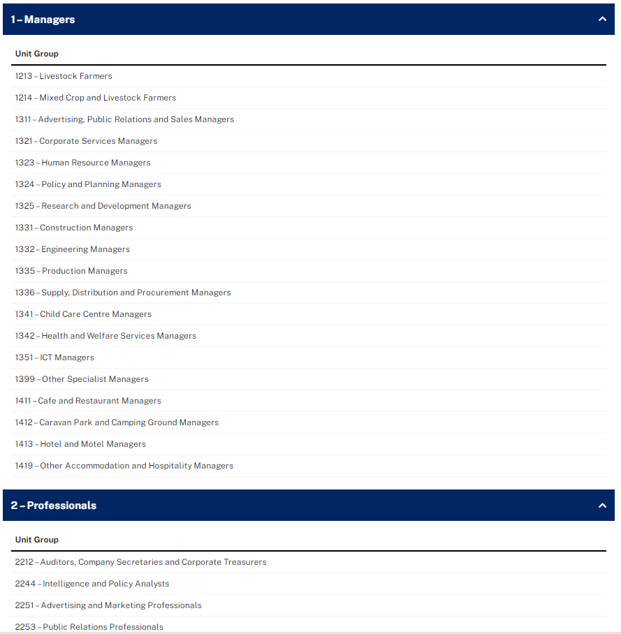 - within an ANZSCO unit group identified on the Pathway 2 skills list, and