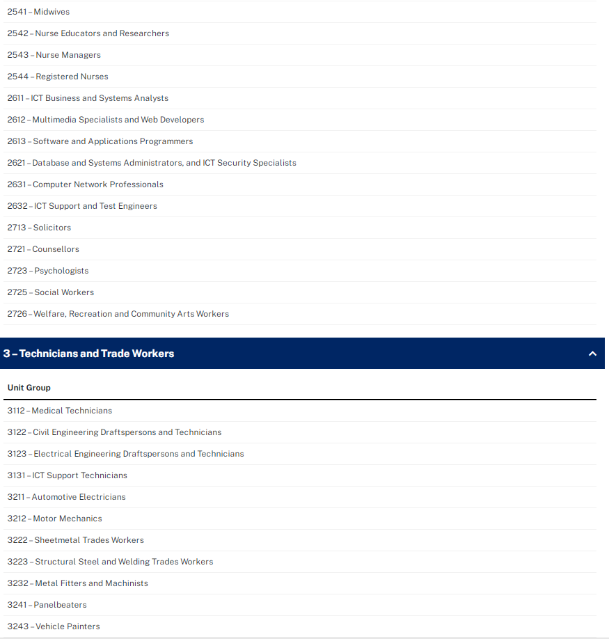 - within an ANZSCO unit group identified on the Stream B skills list, and