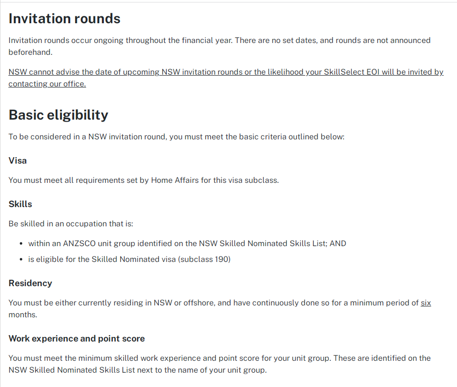 其次,NSW190担保还是采用邀请制,新州的邀请窗口期不设具体的日期,且不会提前通知,整个财年都会有邀请,新州也告知申请人新州州担保竞争激烈,申请人可以选择多种移民途径。