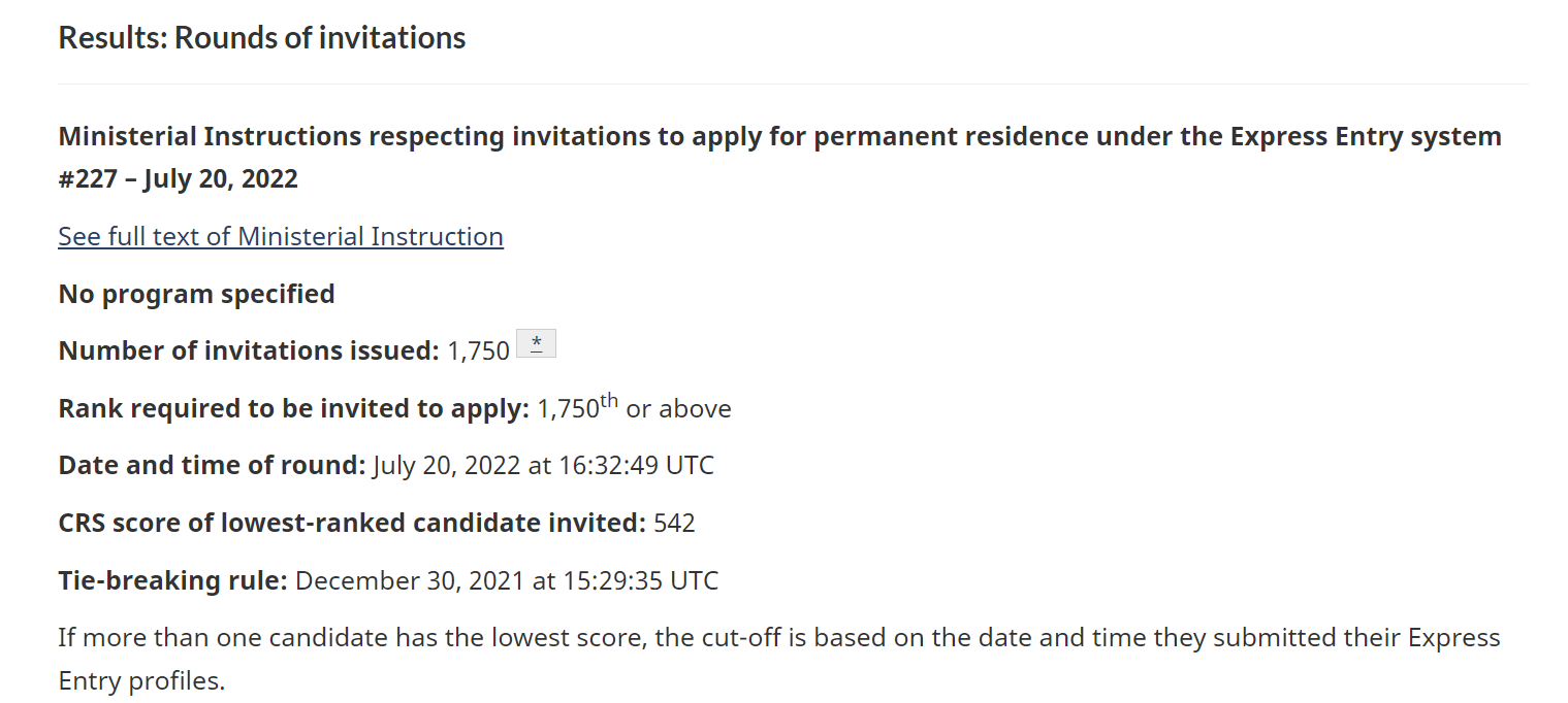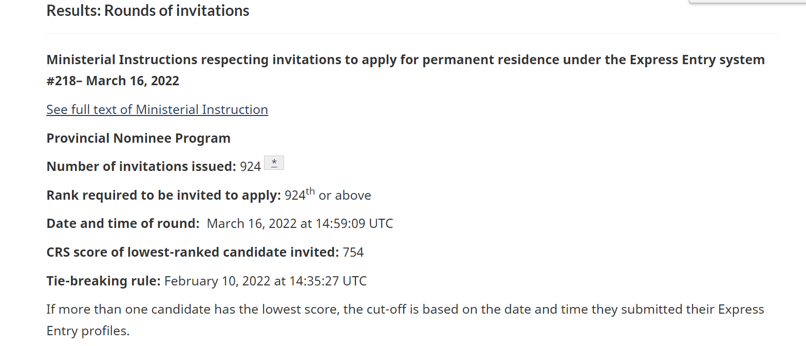 If more than one candidate has the lowest score, the cut-off is based on the date and time they submitted their Express Entry profiles.