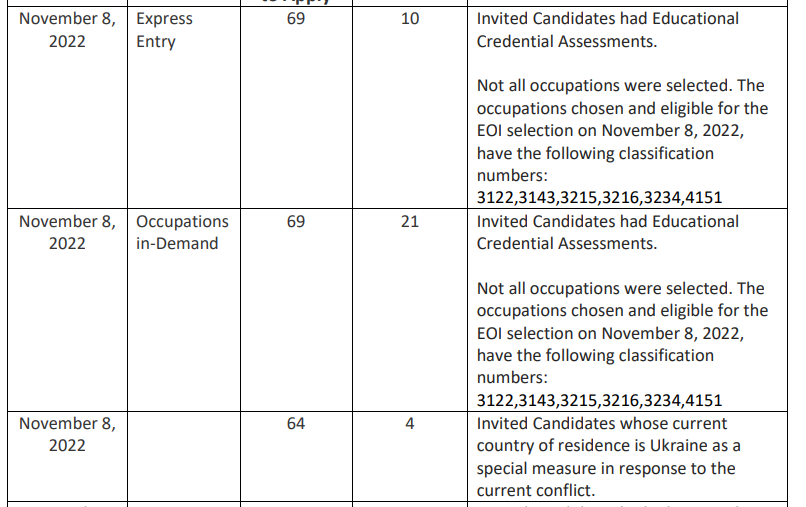 其中 31 份邀请,目标是六个国家职业分类代码,要求最低分数为 69。