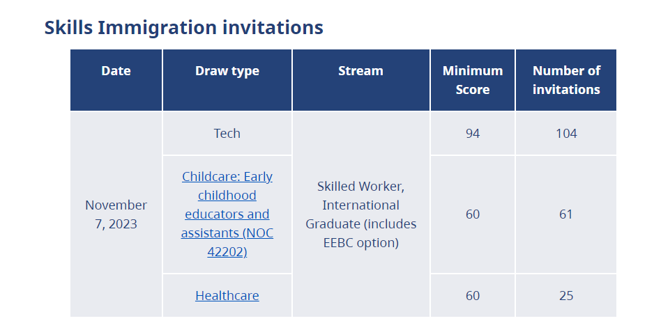 BC省11 月 7 日的抽签针对特定职业。