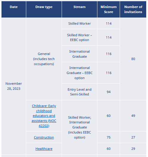 2023年11月28日,BC省最新邀请记录。