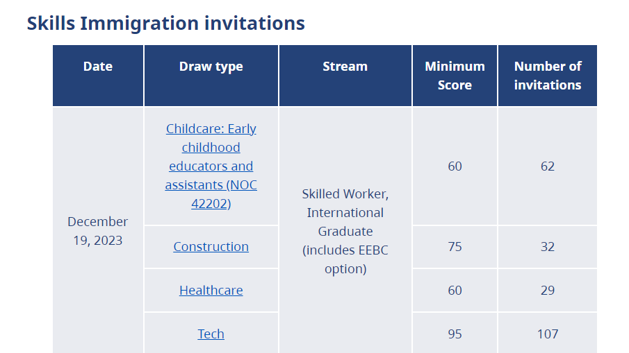 BC省于2023年12 月 19 日针对特定职业进行邀请。