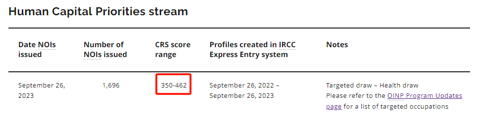 2023年9月26日,安省EE技能优先类别 Human Capital Priorities stream 对 health 职业进行了大规模的邀请,邀请人数为1696人。