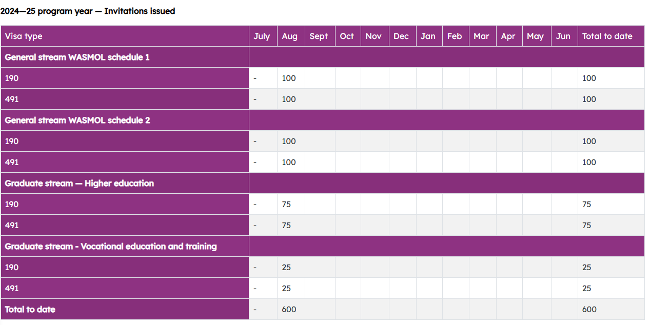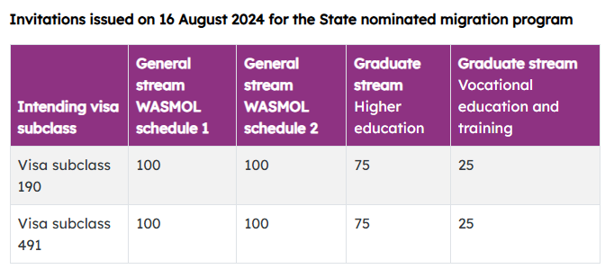 飞出国:西澳2024-25财年2024-08-16邀请数据如下: