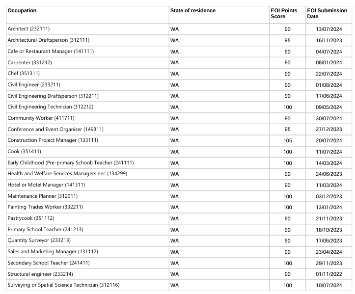 本轮邀请全部给到了目前居住在西澳境内的申请人,各类别的获邀数量分别为: