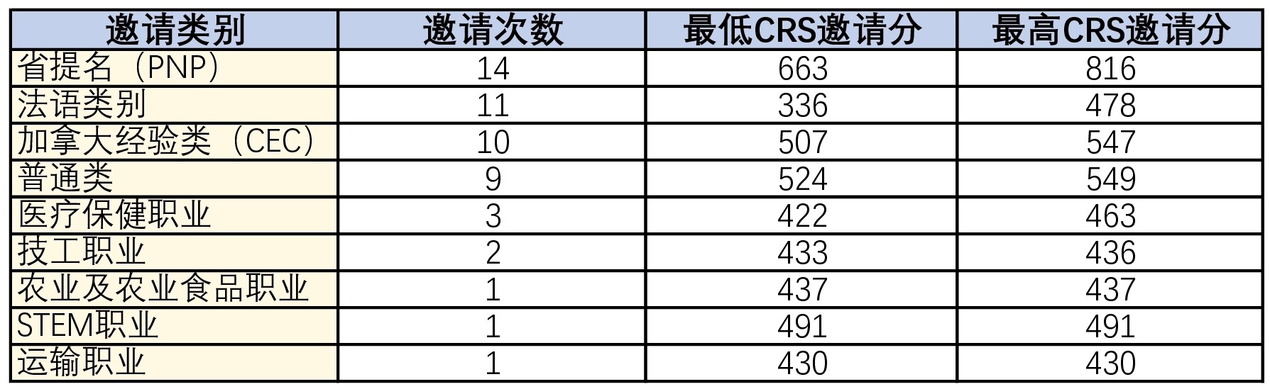 这些基于类别的筛选邀请通常比其他邀请具有更低的CRS分数,因为它们考虑的候选人“子库”更小。