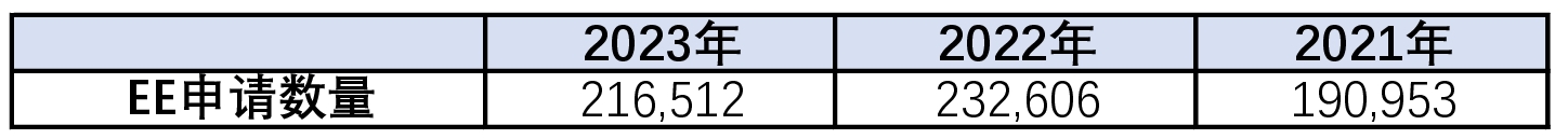 截至目前提供的最新数据,EE池中有221,310个候选人档案,比2023年多。下表显示了过去三年每年12月EE池中的候选人数量: