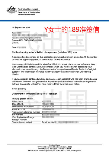 恭喜Y女士顺利获得189签证!![]()