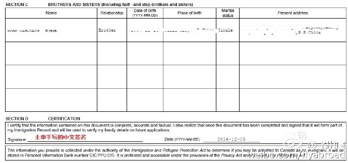 SECTION B:主申兄弟姐妹,如果没有的话,填N/A。