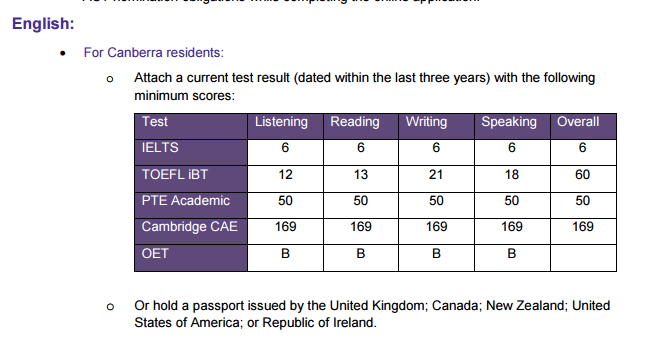| 在堪培拉读硕士 | 在ACT生活12个月。接受全额奖学金或覆盖全部生活开销的生活津贴。或者已经在 skill level 1-4的职业上工作,不要求提名职业相关,不要求全职。 | 不做额外要求,同没有在其他州生活过的情况 |