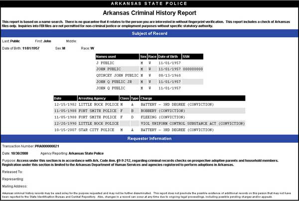 Entities allowed by Arkansas law with the signed consent of the subject of the record check; Entities required by state or federal law where a National/FBI fingerprint-based background (FBI) check is allowed or required. (适用于移民申请人的选第二类)