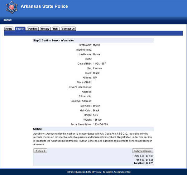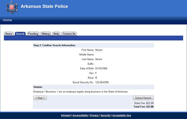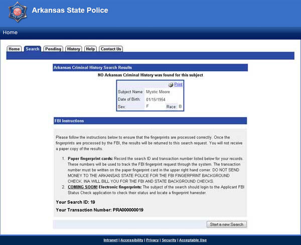- 也可以由申请人自己送到 the Arkansas State Police Headquarters at I-30 at Geyer Springs Road (exit 133) in Little Rock, Arkansas (工作时间:周一到周五, 上午8:00到下午5:00)