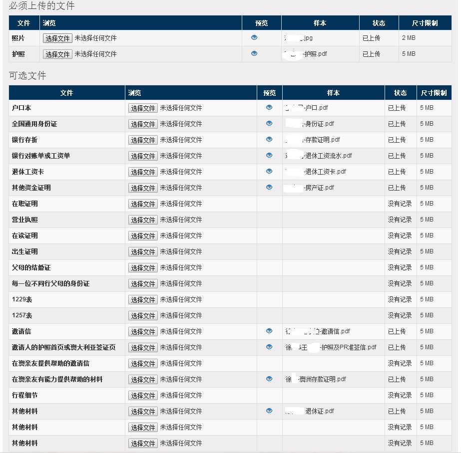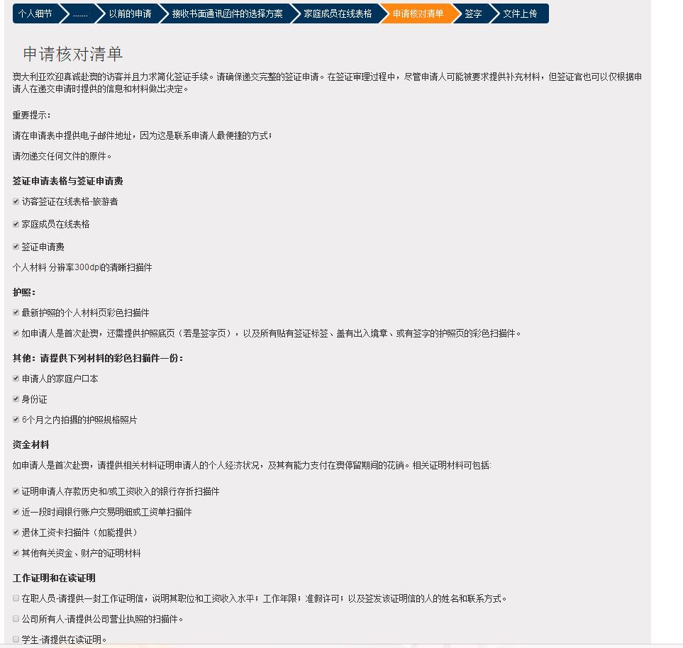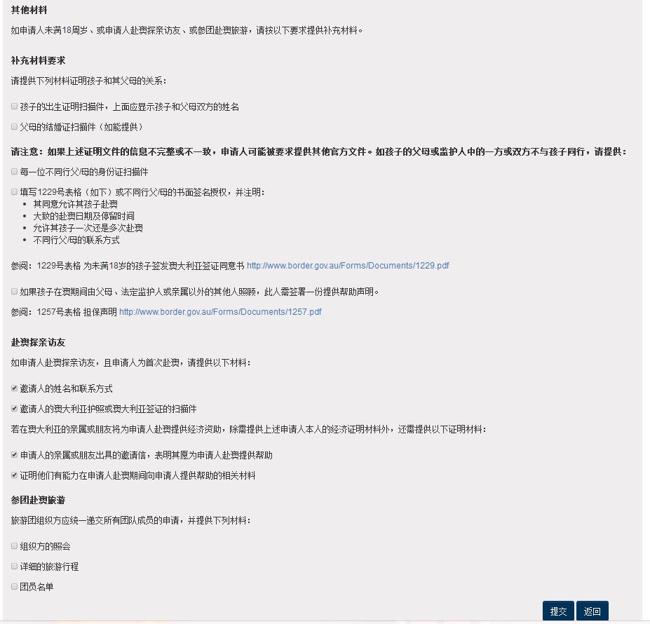澳洲 600 签证需要的申请表及材料清单(用于参考需要的信息和资料):
