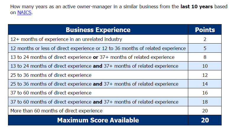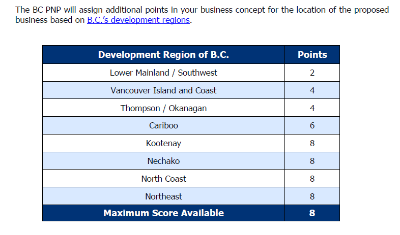 The BC PNP will assign points for your business and/or work experience from the last 10 years. Registrants must demonstrate they have sufficient knowledge and experience to successfully establish the proposed business in B.C.
