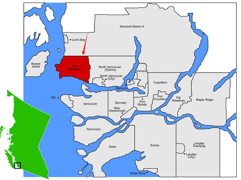西温哥华(West Vancouver),简称西温,是BC省大温哥华地区内的一个地方自治体,位于布勒内湾的北岸,隔岸与温哥华市对望,距温哥华市区大约20分钟的车程。这里的居民收入在大温地区处于较高水平,是非常宜居的社区,环境优美安静,教育质量非常高。