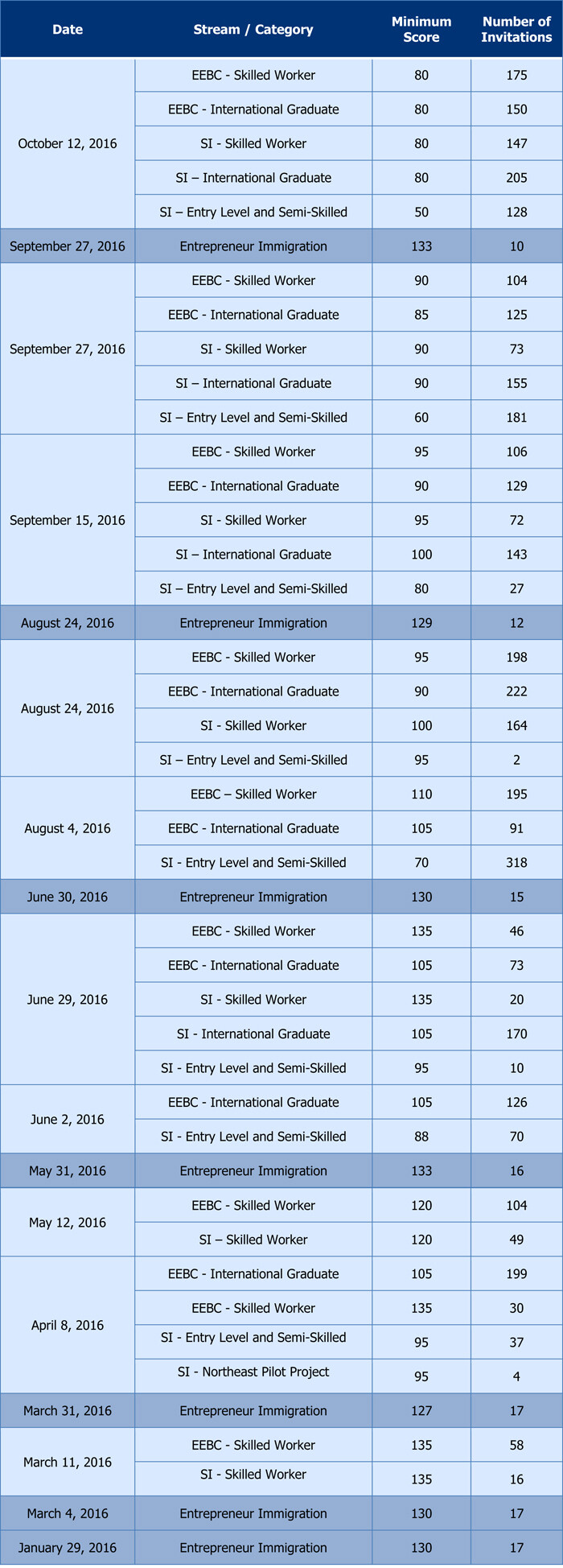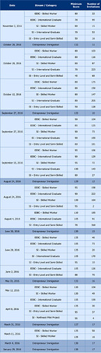 Please refer to the Invitations to Apply page for a full breakdown of invitation numbers and minimum scores.