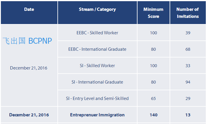 On December 21, 2016, the BC Provincial Nominee Program (BC PNP) issued 263 invitations to apply to registrants from the following category selection pools:
