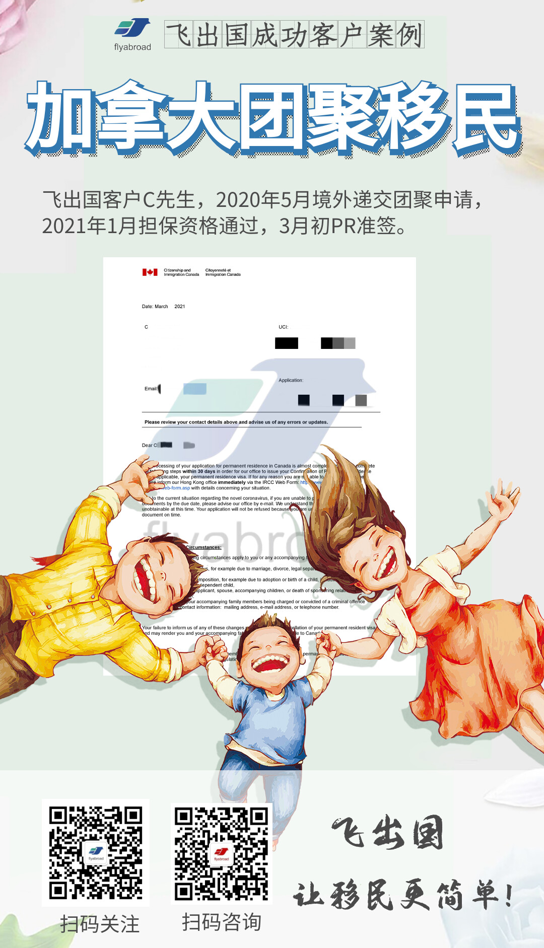 【飞出国团聚移民成功案例】飞出国客户C先生加拿大团聚移民准签
