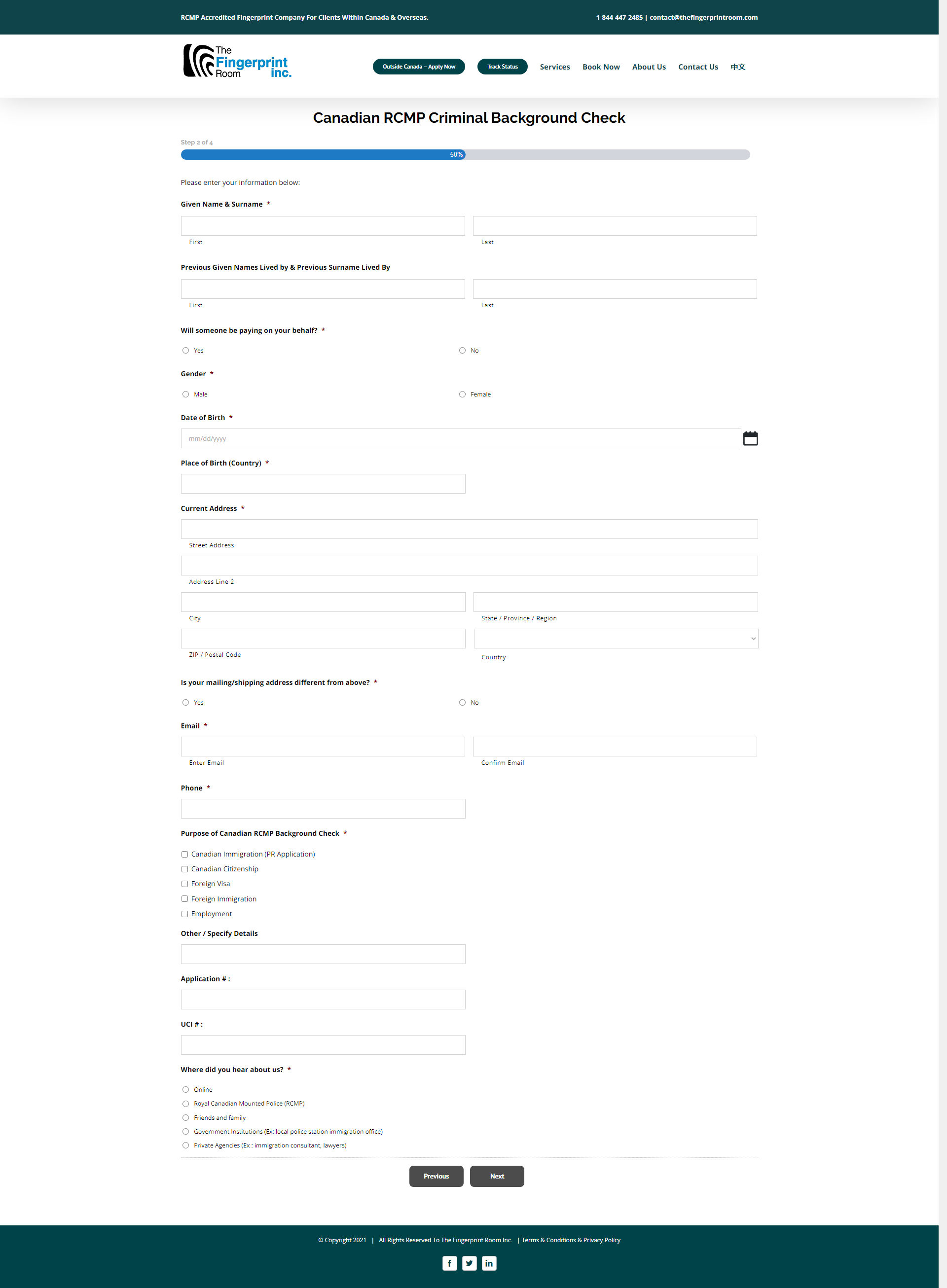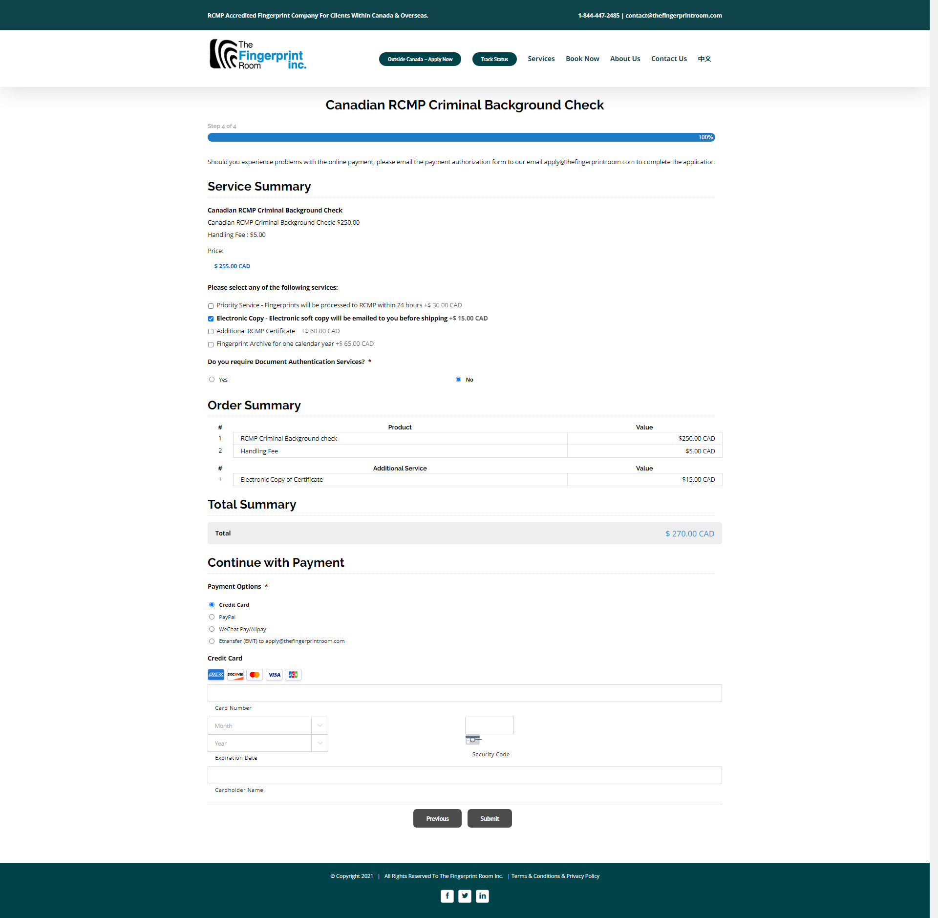 Fingerprints must be submitted electronically to Canadian Criminal Real Time Identification Services (CCRTIS).