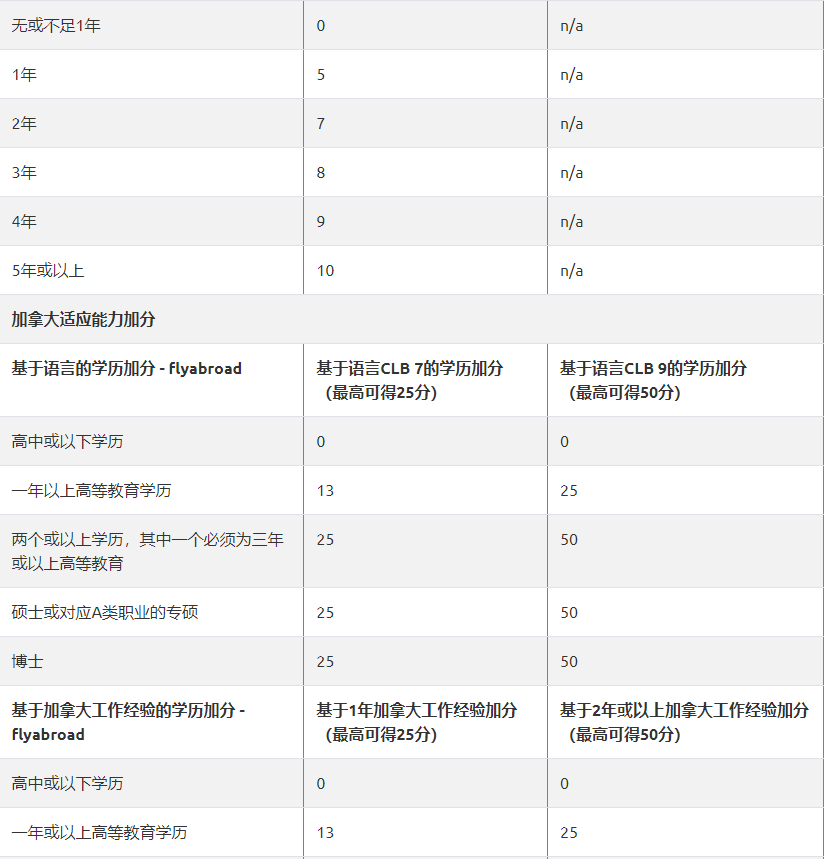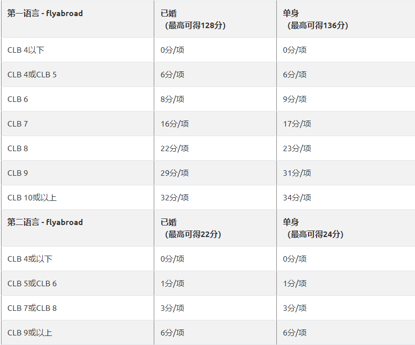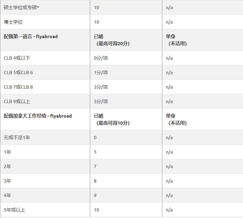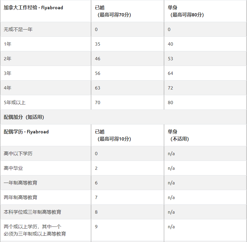 FLYabroad:总分 1200=核心分数+配偶加分+适应分数+其他分数。下面标准适用于2020-10-27后新的 EE 评分标准。