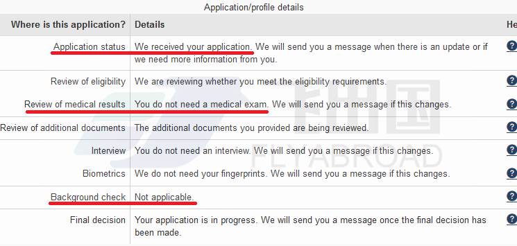 这里飞出国说明的是加拿大EE签证申请提交后等待审批过程的大致状态及要求补料的情况。