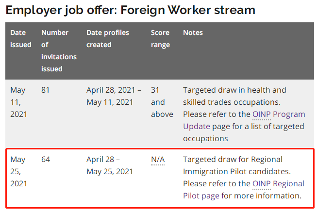 加拿大时间5月25日,安省雇主担保项目外籍工人类别(Employer Job Offer: Foreign Worker stream)再次发邀请,本次邀请的是Regional Immigration Pilot项目申请人。