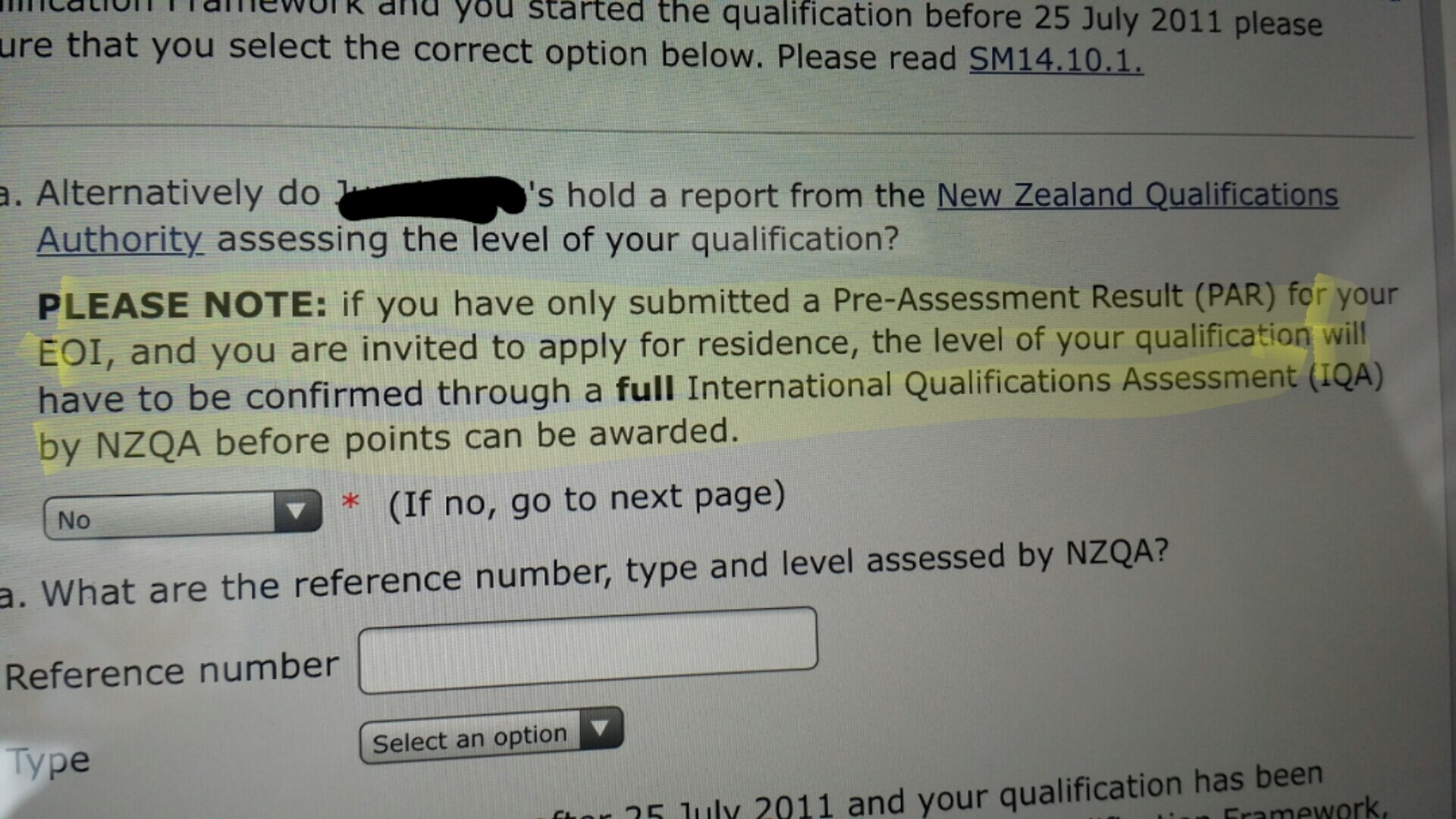 如图是不是说一定要IQA?不然拿不到这个加分?可是我在nzqa上看到说eoi阶段只要par,邀请以后是不是要IQA也不一定。这个是配偶,就差这些分了,我现在是par还是iqa??