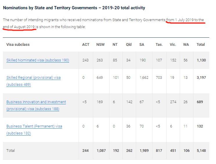 从数据上来看7-8月份190州担保邀请发放情况,ACT以及NSW了两个州是190邀请的主力军,南澳7月开放的州担保,州担保政策也是主要偏向于给申请人489担保,因此,领跑489邀请发放数,紧随其后的是NSW和TAS塔州的489发放数量。