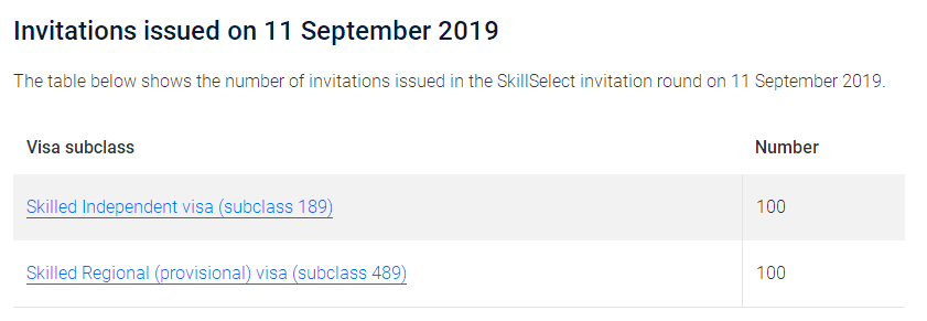 此次邀请和上个月邀请数量保持一致,189和489各发放了100个邀请;但是移民局之前官方消息是宣称9月10日是发放489签证邀请的最后一天,这次在9月11日又给489亲属担保发放了100个邀请,这是什么神操作,咱也不敢说,咱也不敢问,anyway,有邀请就行。