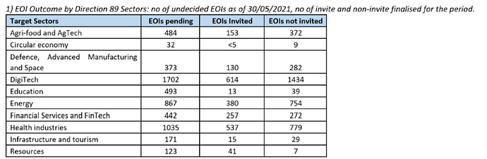 - EOI筛选的通过率也是大家非常关心的一个信息,根据以下移民局统计的2021年1月1日至2021年5月30日递交的EOI筛选通过和未通过情况来看,除开还未审理的pending EOIs,没有通过EOI筛选的申请比例整体达到了65%。未通过率想的有些高,一方面申请人中有不少确实不够资格的群体,另外一方面,大胆猜想,移民局到了财年结尾也是要加速处理积压,所以审理严格,未通过的也就多了。