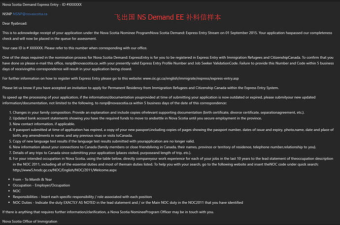 This is to acknowledge receipt of your application under the Nova Scotia Nominee ProgramNova Scotia Demand: Express Entry Stream on 01 September 2015. Your application has passed our completeness check and will now be placed in the queue for assessment.