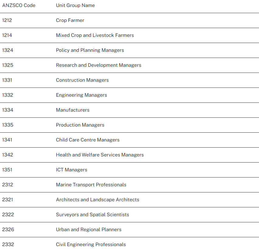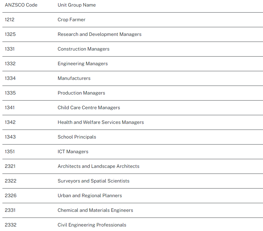 新州的职业清单是按照ANZSCO Unit Group来定的,比如1331 Construction Managers下包括了133111 Construction Project Manager和133112 Project Builder,这两个职业也都是可以申请190签证的职业,那么就是这两个职业都属于在新州的职业清单上的。完整的新州190职业清单如下: