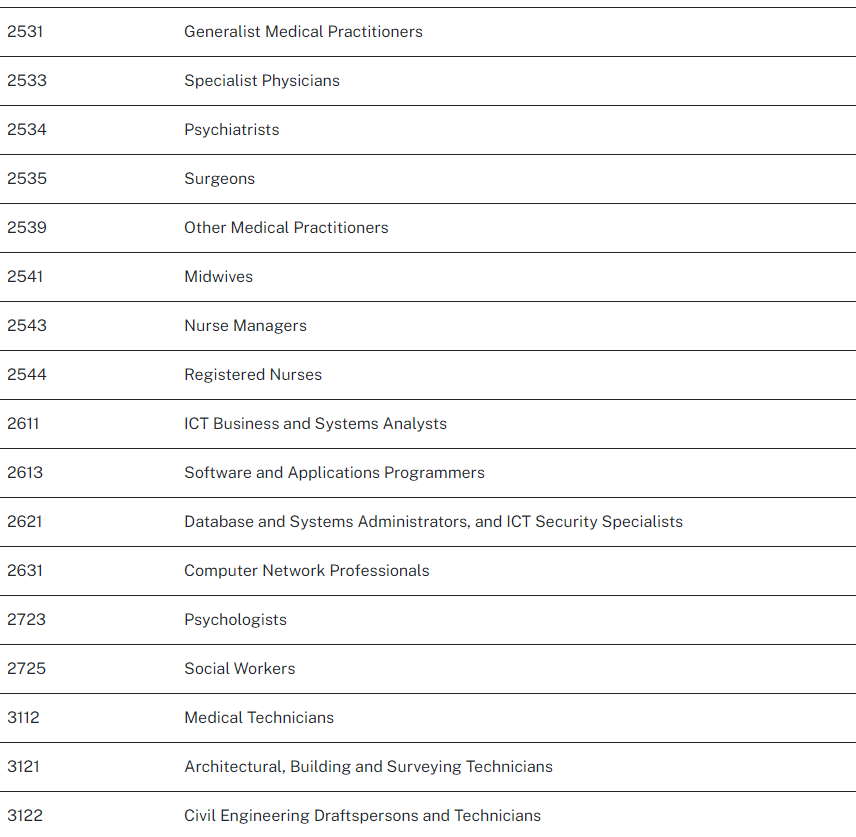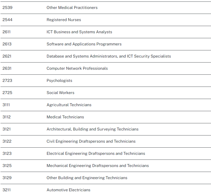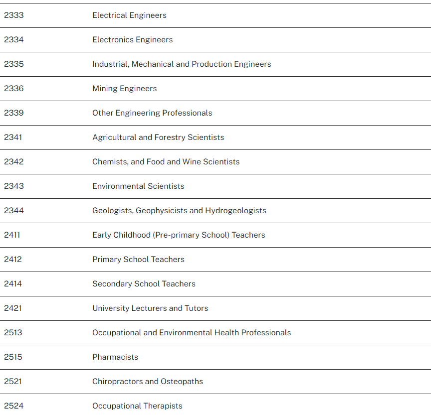 除此之外,新州按照ANZSCO四位代码职业组别公布了2024-25财年新州州担保的优先职业,190和491担保所对应的职业清单有所不同,所有四位代码下面的职业都是符合的。