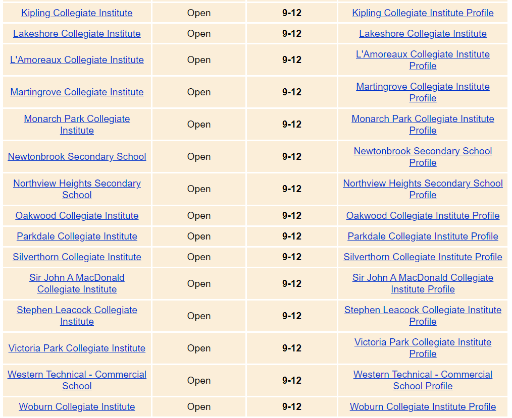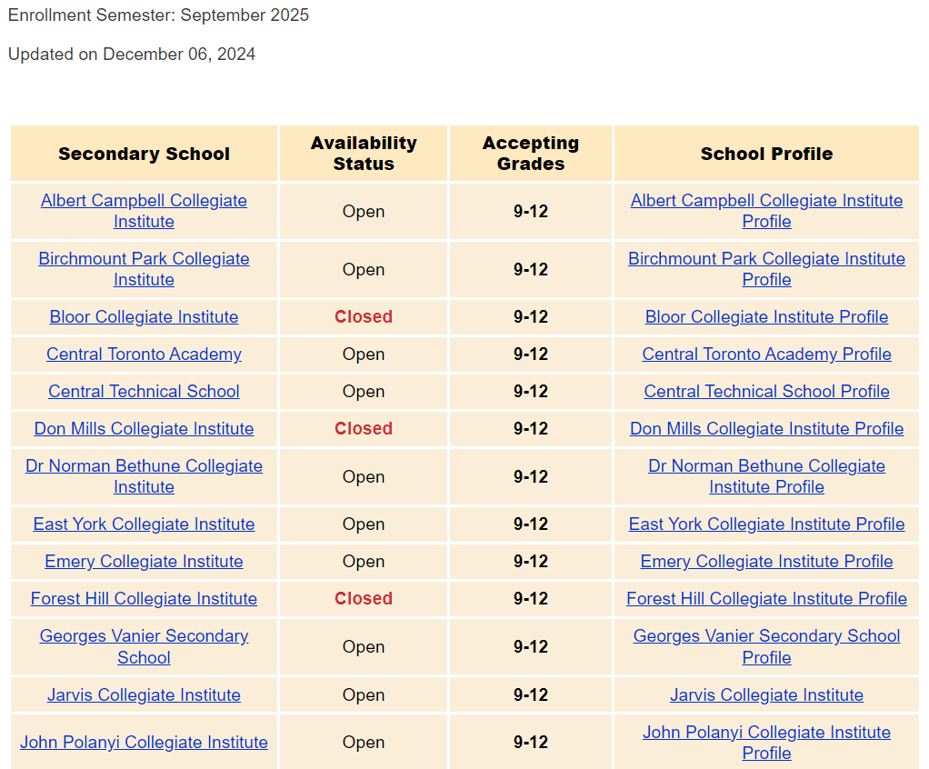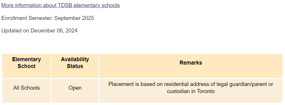 目前,多伦多教育局下所有的小学(Elementary School,K-8年级)都开始接收申请。