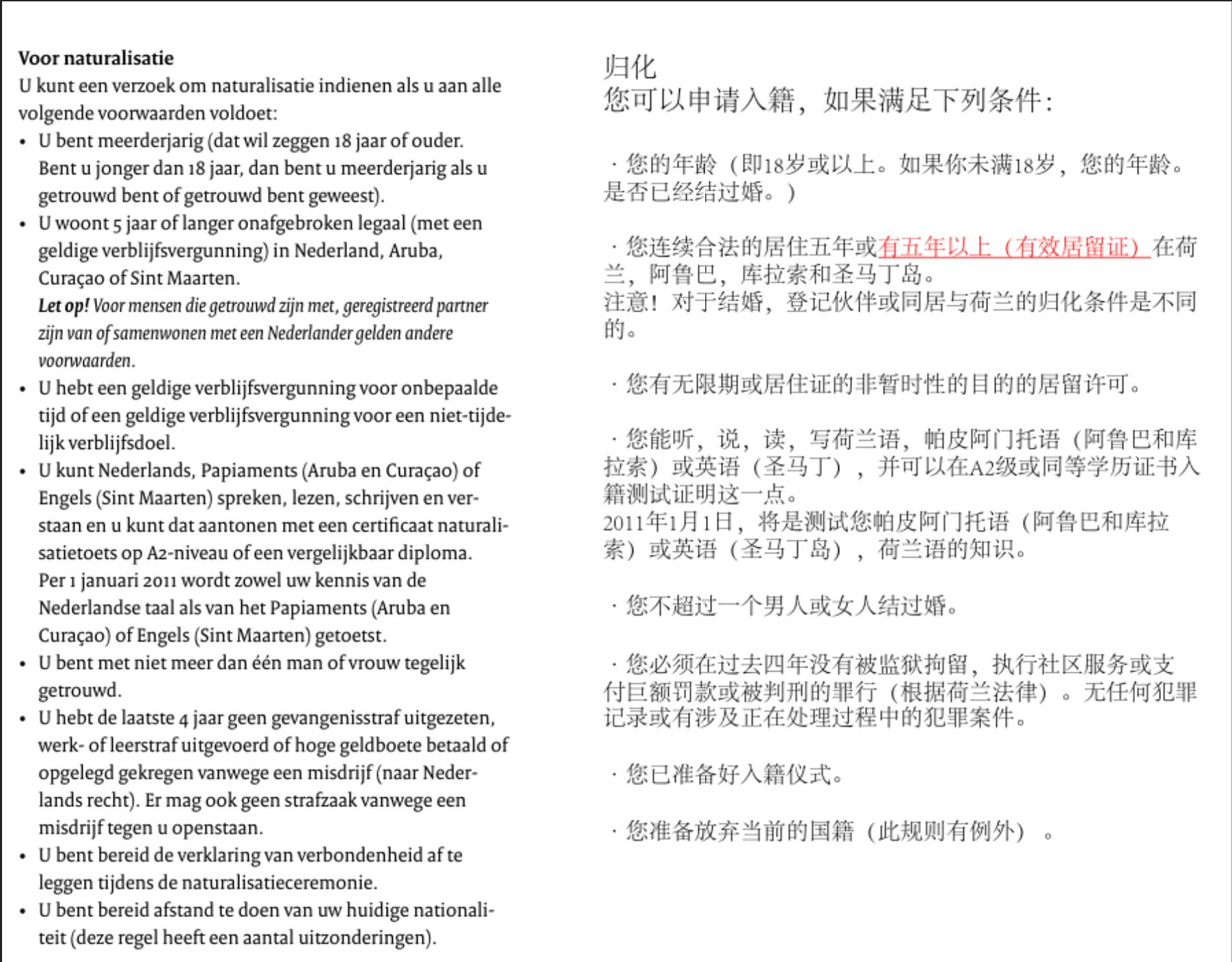 荷兰入籍要求: