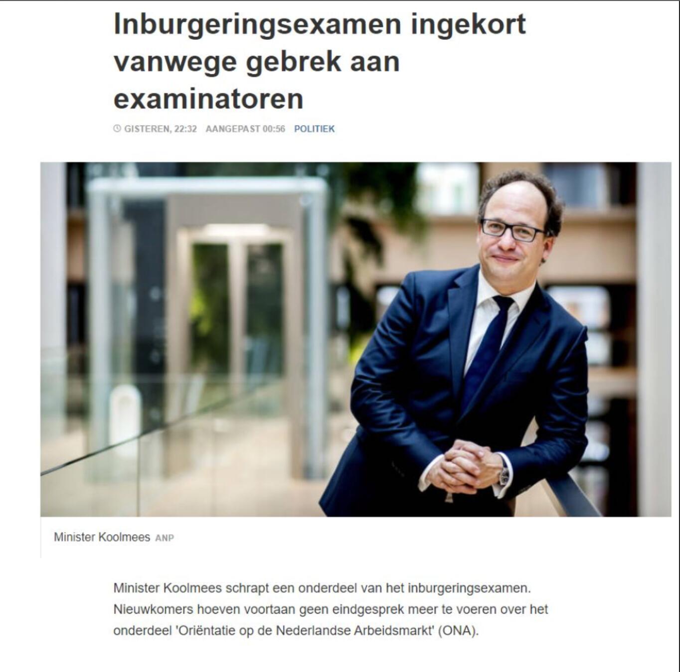 但是,根据最近的新闻,由于考官的严重短缺,荷兰社会事务和就业部部长Koolmees 表示:在接下来的日子里 ONA 考试将会面临重大的改革。