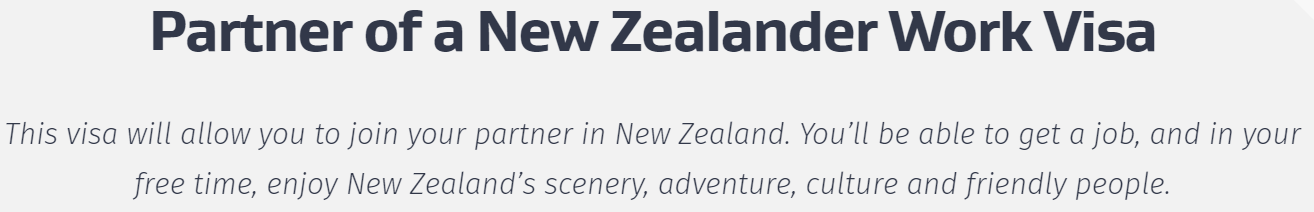 该签证为针对新西兰公民或居民配偶/伴侣的工作签证。