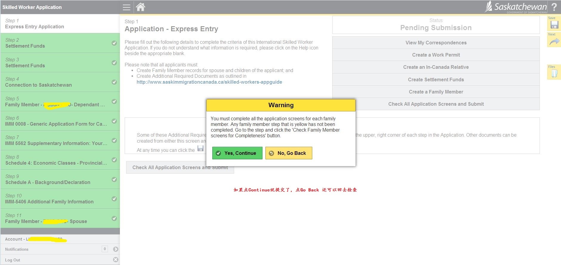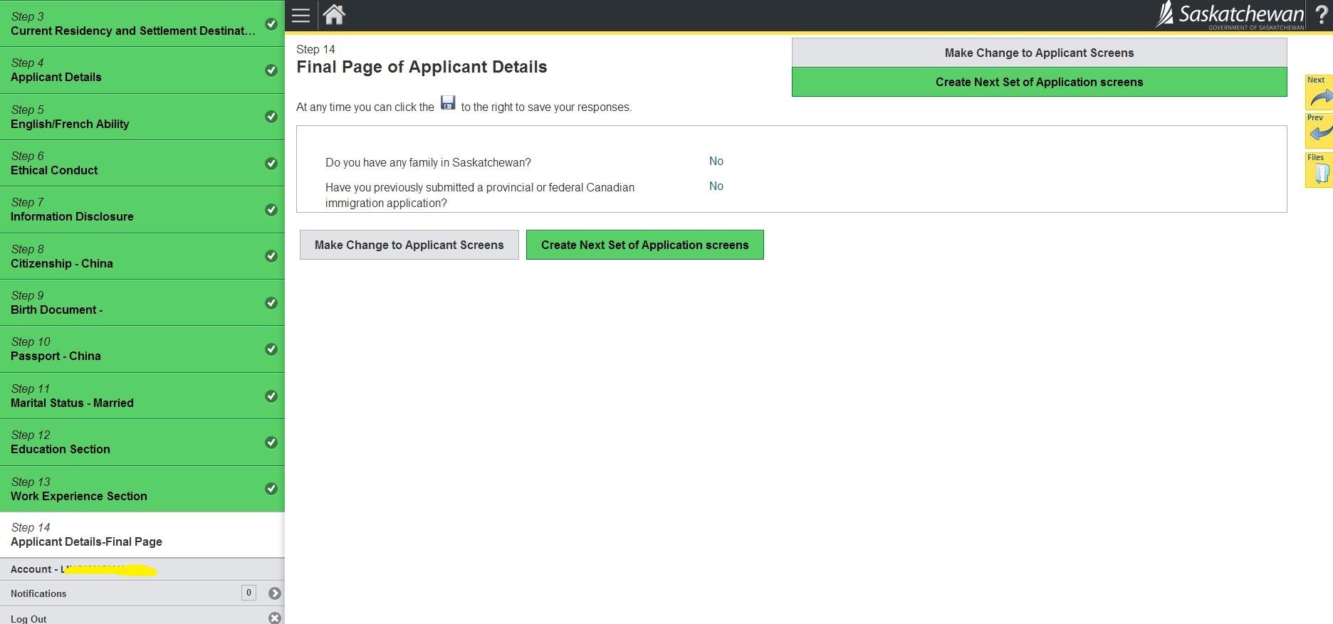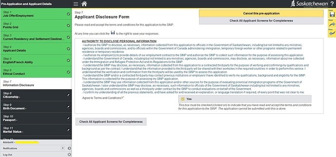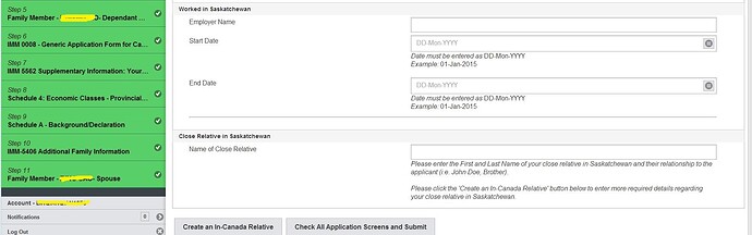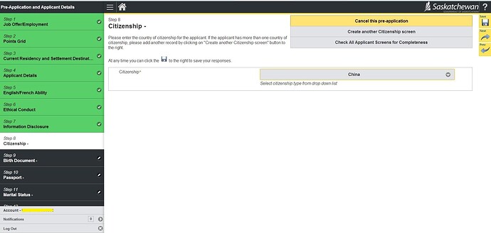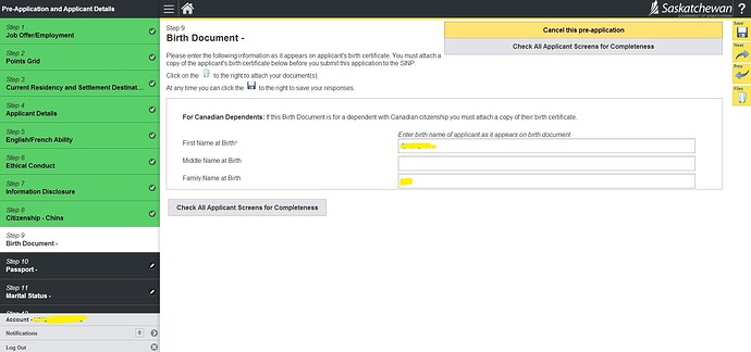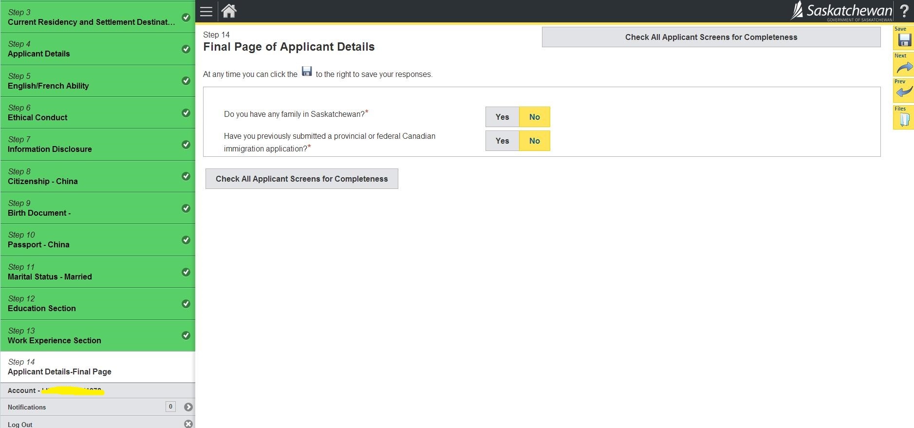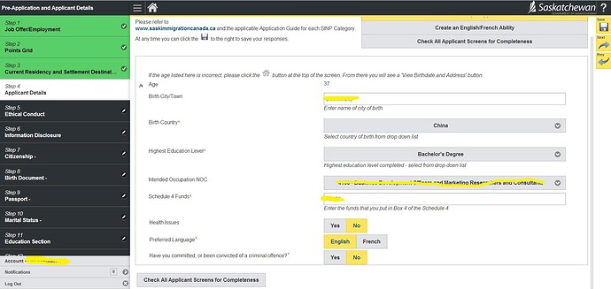 23.询问是否在萨省有亲属、是否申请过加拿大联邦或省提名; 然后Check All Applicant Screen for Completeness检查完整性
