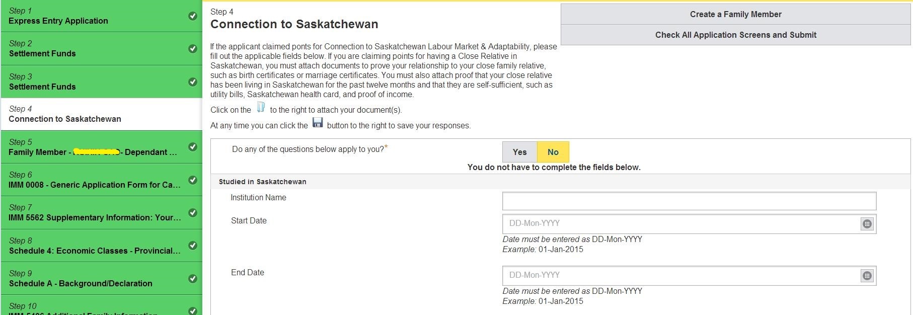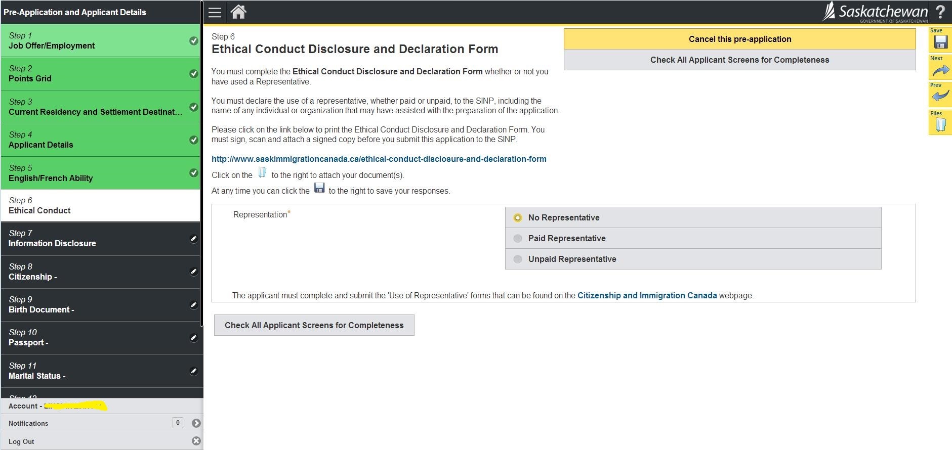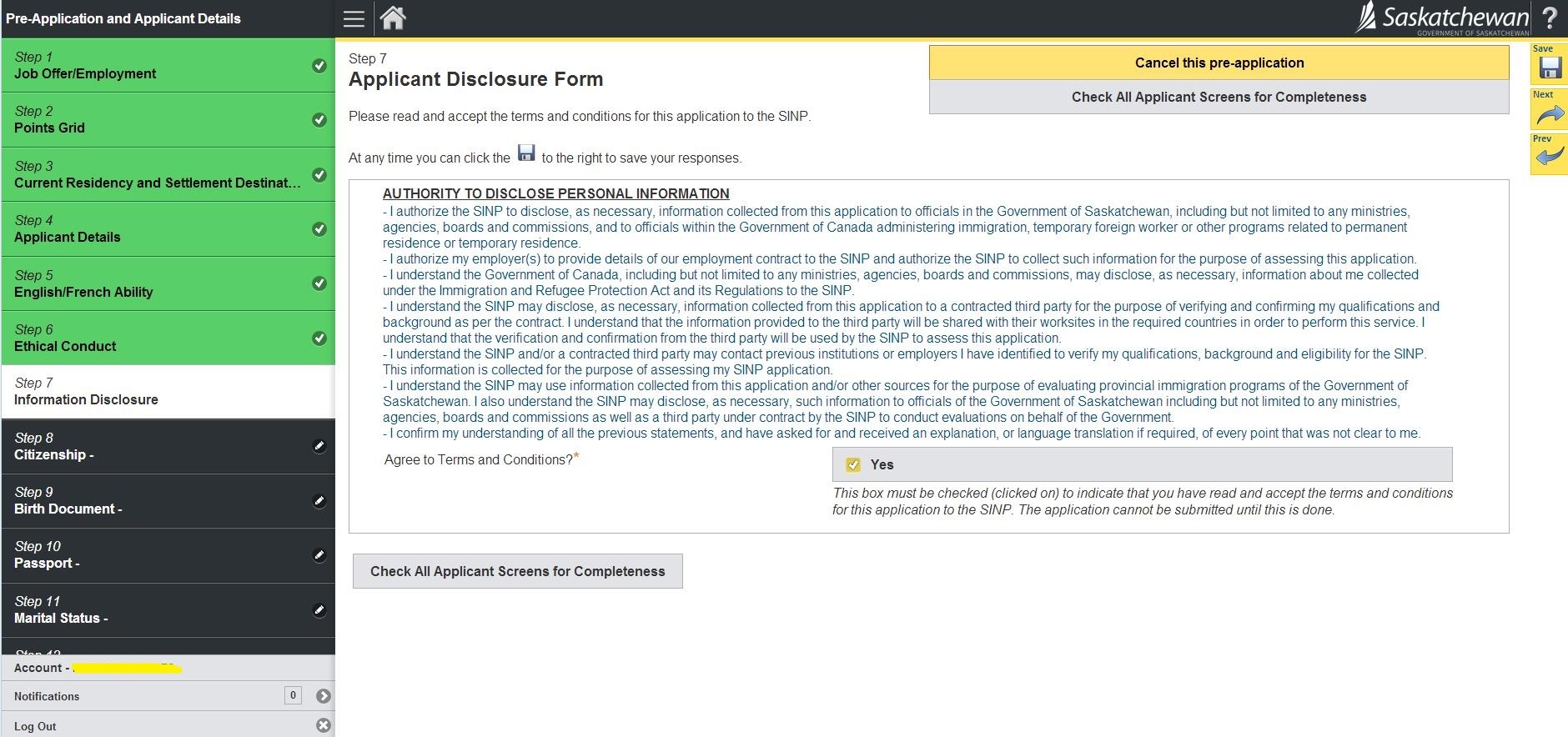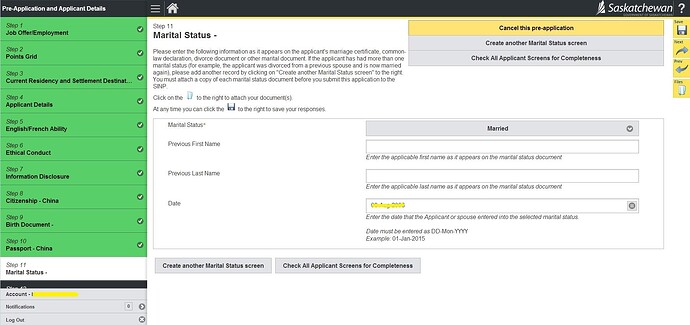 23.询问是否在萨省有亲属、是否申请过加拿大联邦或省提名; 然后Check All Applicant Screen for Completeness检查完整性